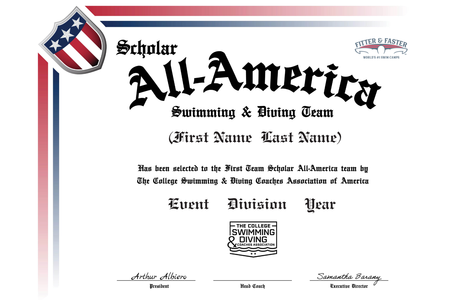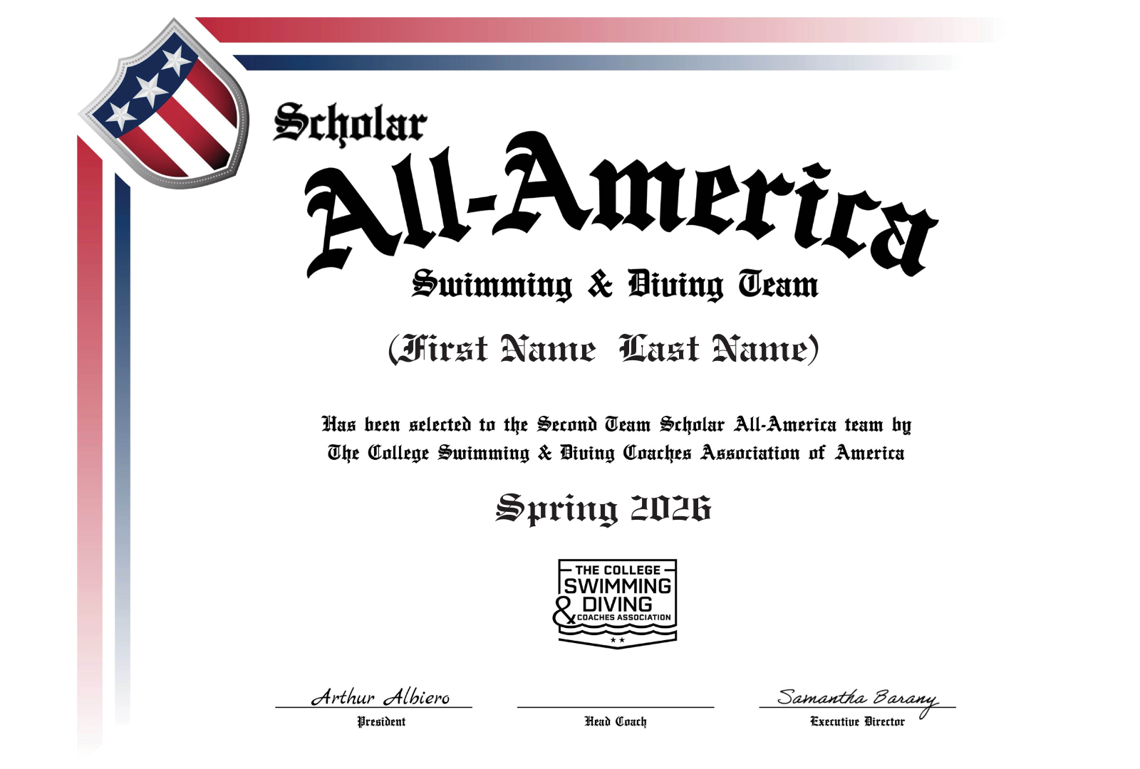Personalized with your student-athlete’s name, division, semester and year.